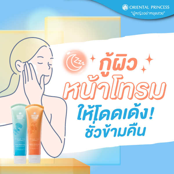เพราะรู้ซึ้งถึงคุณสมบัติอันสุดอัศจรรย์ของ Sleeping Mask เป็นอย่างดีว่าสามารถตอบโจทย์ความต้องของผิวได้อย่างมีประสิทธิภาพ .. Oriental Princess จึงทำการศึกษาวิจัยถึงคุณสมบัติ และผลสัมฤทธิ์หลังการใช้ Sleeping Mask อันนำมาซึ่งการพัฒนา และปรับปรุงคุณภาพผลิตภัณฑ์บำรุงเข้มข้นในรูปแบบ Sleeping Mask ที่ตอบโจทย์ความต้องการของผิวที่สุดภายใต้ชื่อชุด Fresh Up Mask ต่อไปนี้