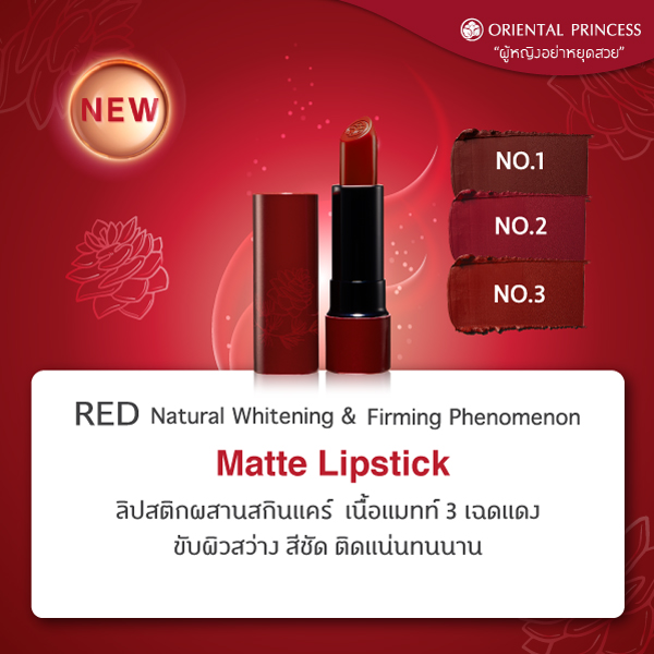 ลิปสติกผสานสกินแคร์ เนื้อแมทท์ 3 เฉดแดง ขับผิวสว่าง สีชัด ติดแน่นทนนาน