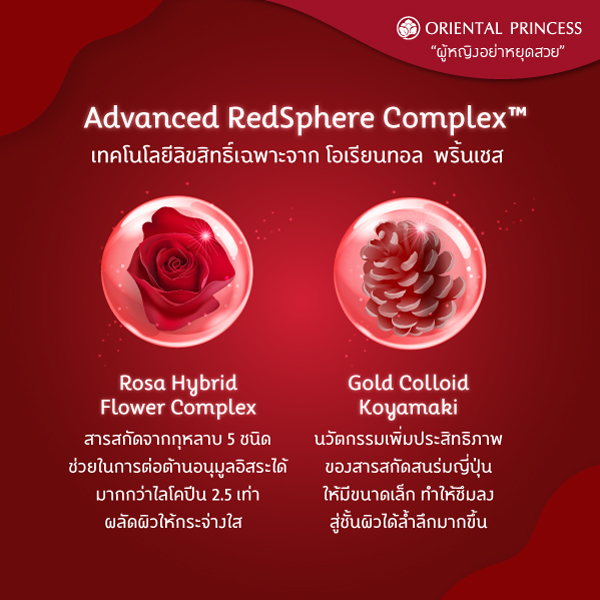 ลิขสิทธิ์เฉพาะจากโอเรียนทอล  พริ้นเซส Advanced RedSphere Complex™ ซึ่งเป็นนวัตกรรม
