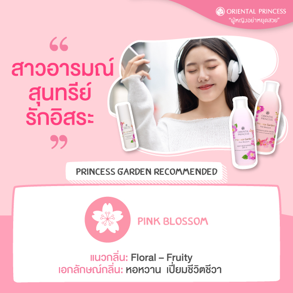 - Pink Blossom แนวกลิ่น Floral – Fruity เอกลักษณ์กลิ่น .. หอมหวาน เปี่ยมชีวิตชีวา