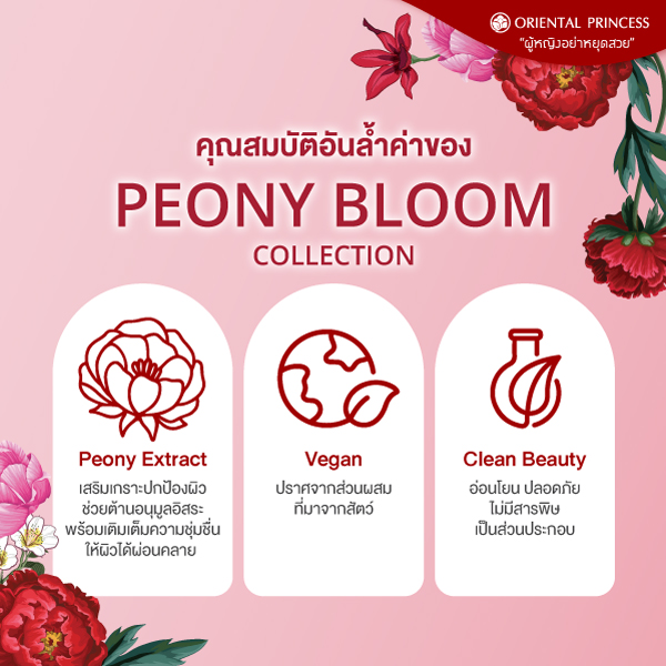 งามสง่า และทรงเกียรติ ดุจราชาแห่งมวลบุปผชาติ Peony Bloom Collection by Oriental Princess beneficial มนตราแห่งสีสัน ผสานความหอมอ่อนโยนละมุนเป็นหนึ่งเดียว