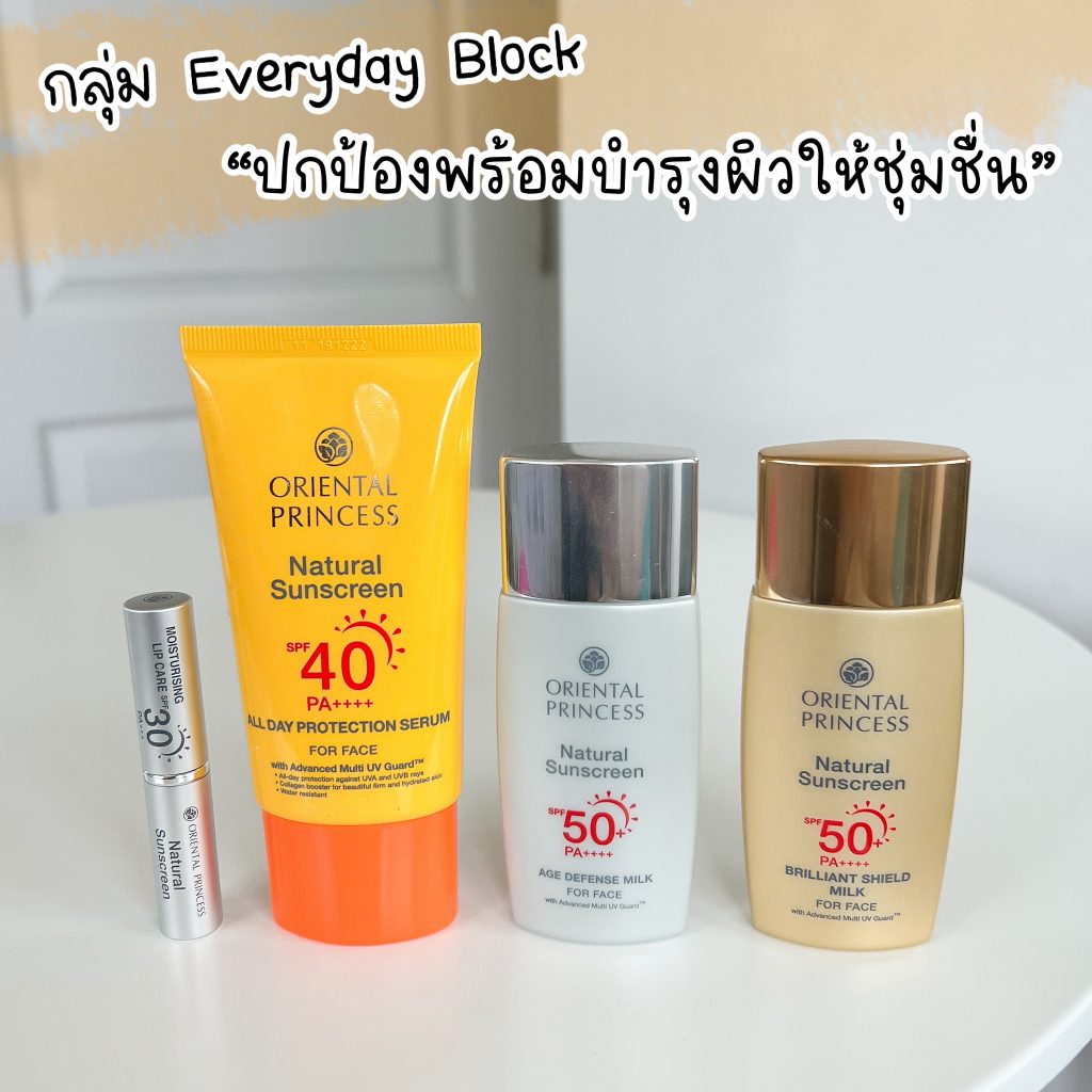 เริ่มกันที่กลุ่มแรกเป็นกลุ่ม Everyday Block ช่วยปกป้องพร้อมบำรุงผิวให้ชุ่มชื่นในกลุ่มนี้สามารถหยิบมาทาได้ทุกวัน