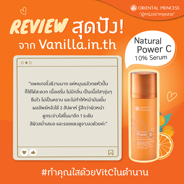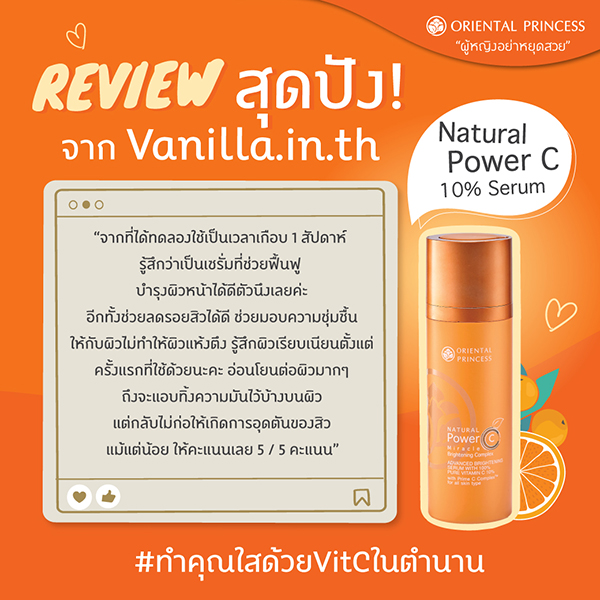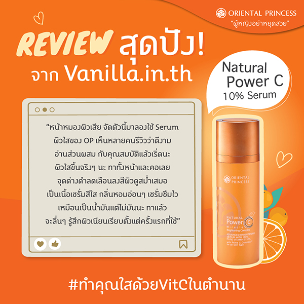 * “ ปกติเป็นคนมีจุดด่างดำ จากรอยสิว พอซื้อ Oriental Princess วิตามิน C เข้มข้นเซรั่มเนื้อใสที่ทาแล้วรู้สึกเนื้อเซรั่ม