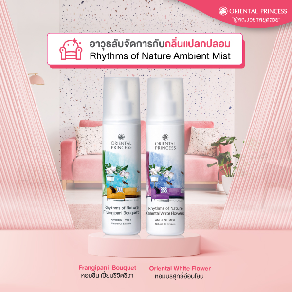 - Rhythms of Nature Ambient Mist สเปรย์น้ำหอมปรับอากาศภายในห้อง  ช่วยสร้างบรรยากาศความหอมสดชื่น  พร้อมกลบกลิ่นแปลกปลอมให้บรรยากาศในห้องหอม  ส่วนผสมบริสุทธิ์จากนานาสารสกัดธรรมชาติจึงปลอดภัยปราศจากการระคายเคือง  กับ  2  กลิ่นหอมละมุนจากธรรมชาติ