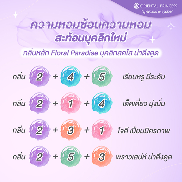 #  กลิ่นที่  2  +  กลิ่นที่  5  +  กลิ่นที่  3 =    พราวเสน่ห์  น่าดึงดูด
