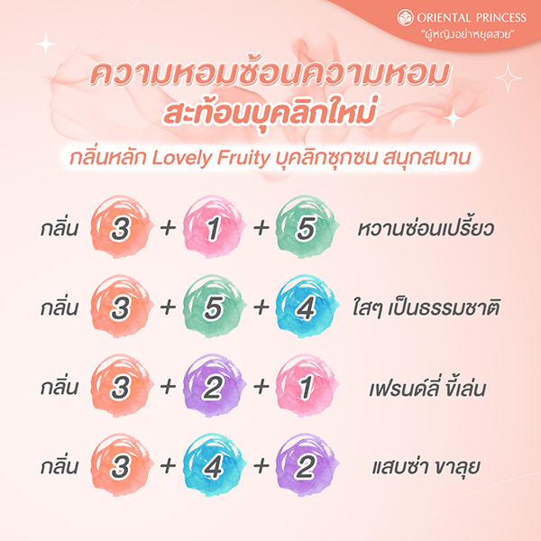 #  กลิ่นที่  1  +  กลิ่นที่  3  +  กลิ่นที่  4 =    น่ารัก  สดใส  มั่นใจ