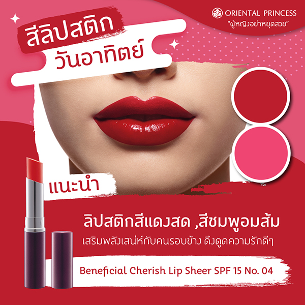 แนะนำ : ลิปสติกสีแดงสด หรือแดงมะเหมี่ยว ,สีชมพูอมส้ม